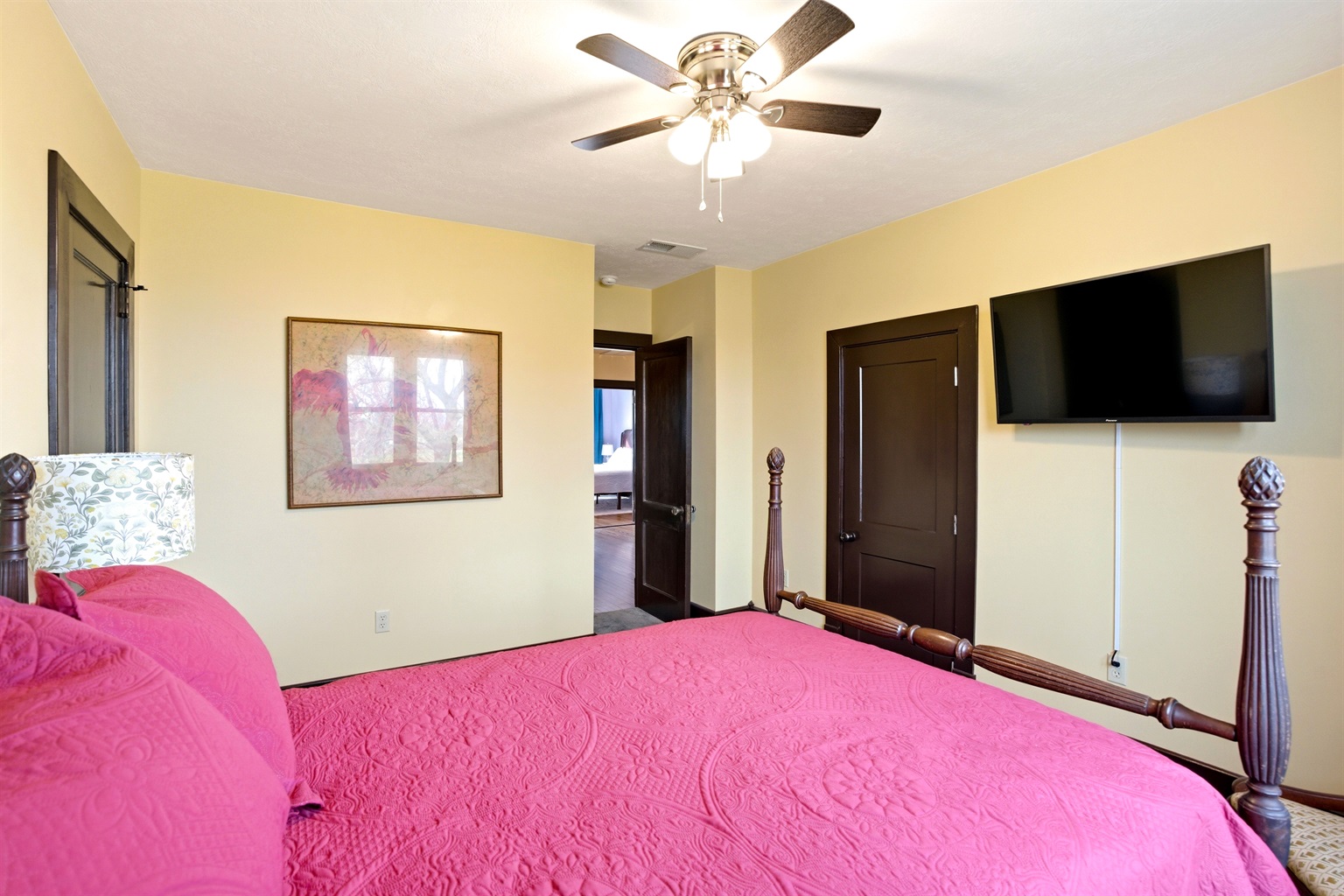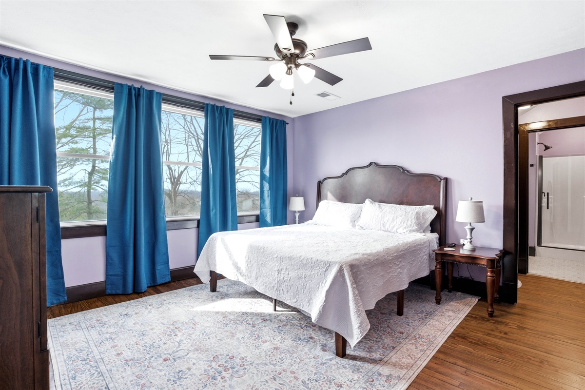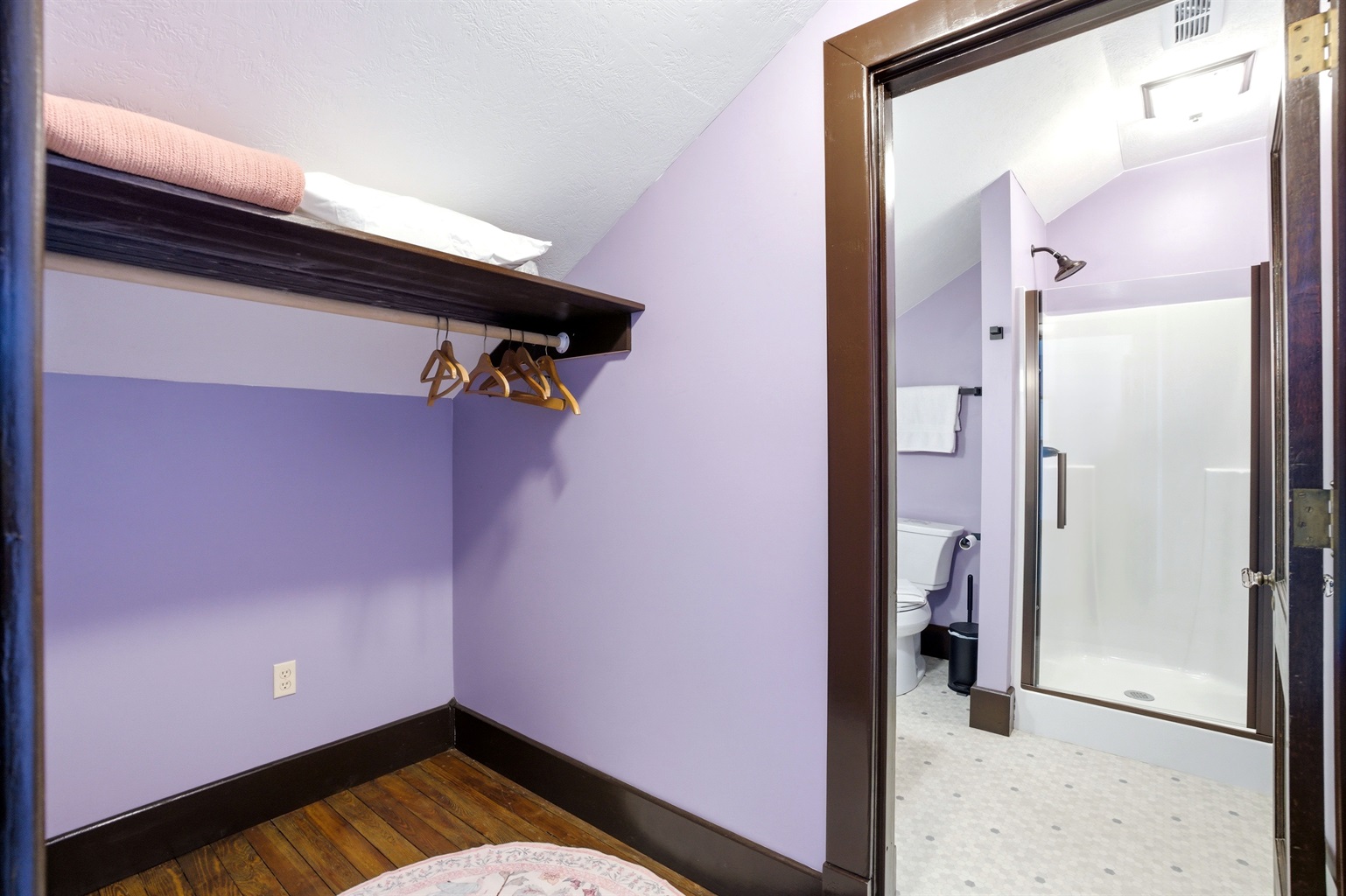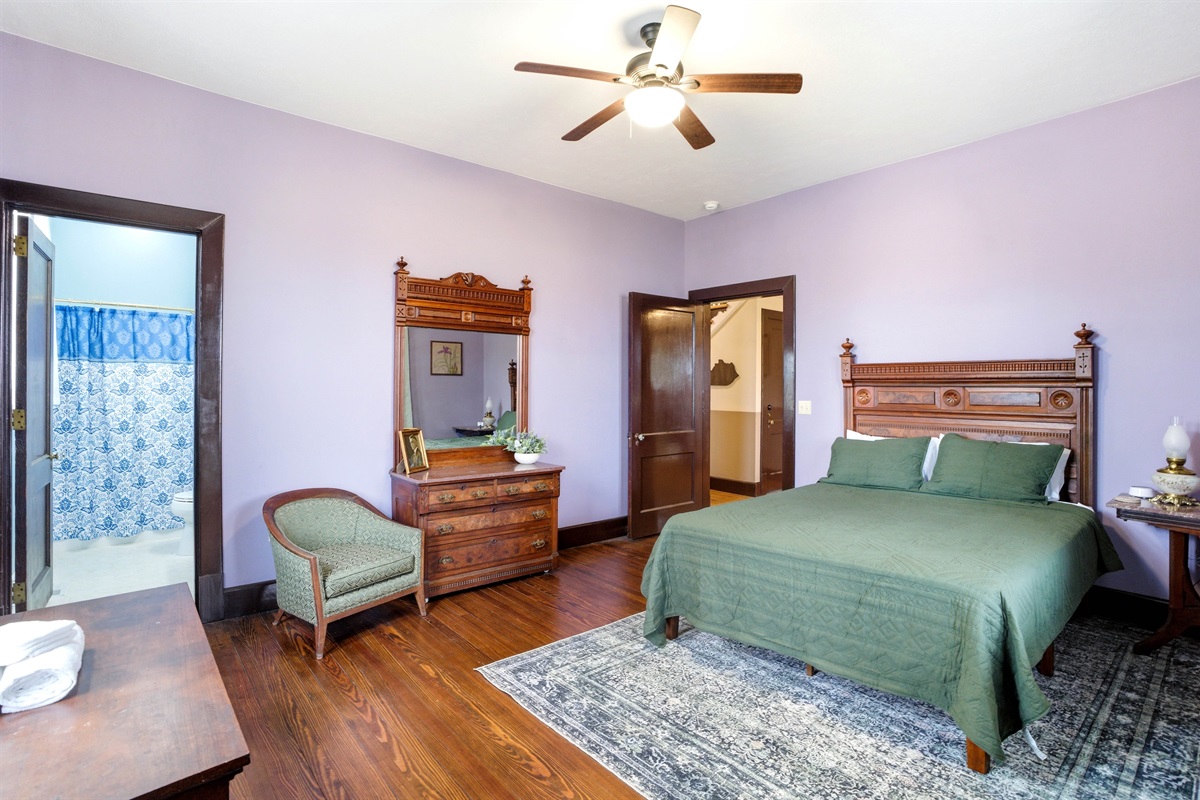 Inside, the home blends historic charm with all the modern conveniences guests expect, including comfortable sleeping spaces, climate control, Wi-Fi, a fully equipped kitchen, and a tankless water heater for endless hot showers. You get the feel of a quiet country home without sacrificing comfort.