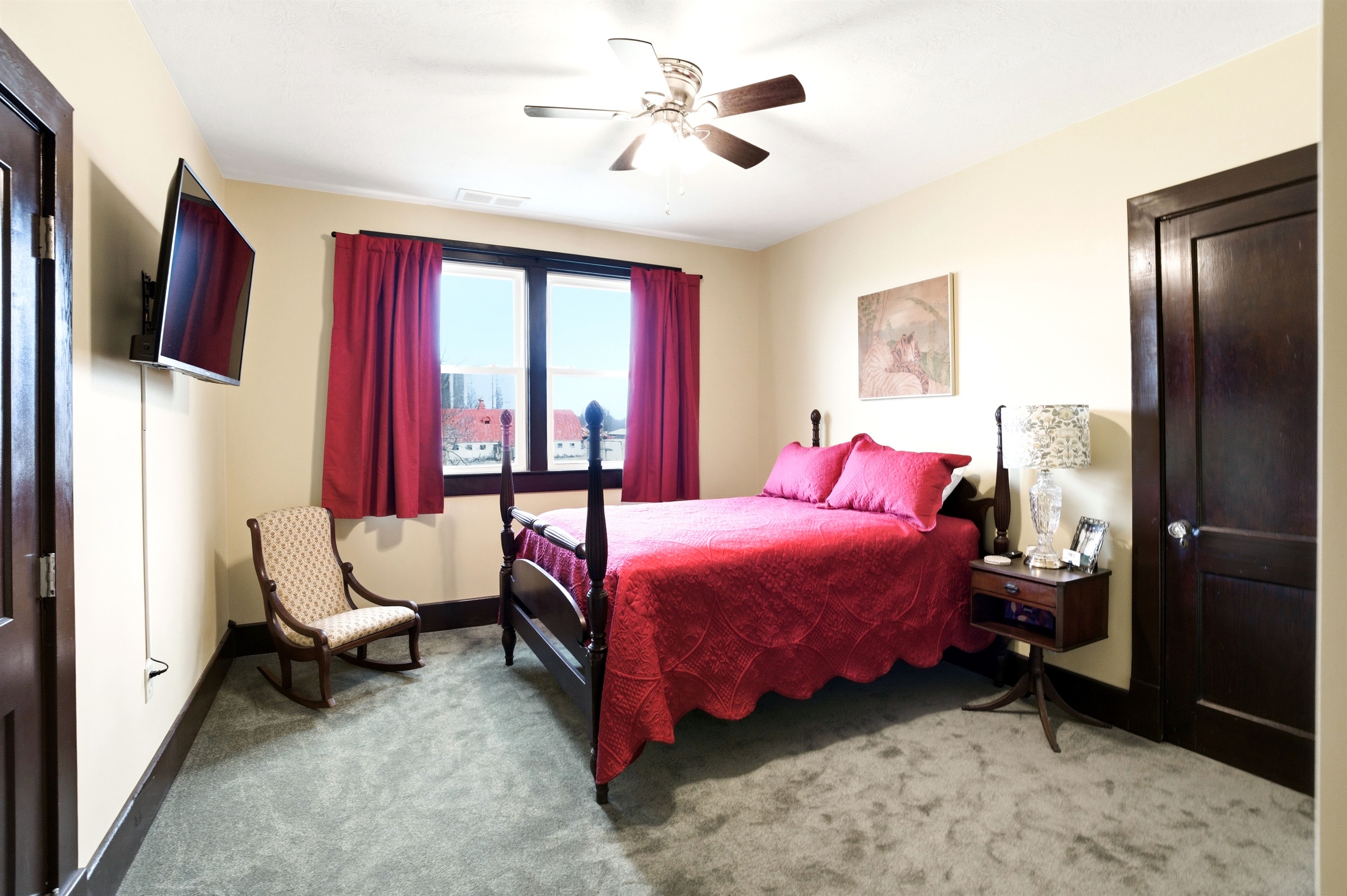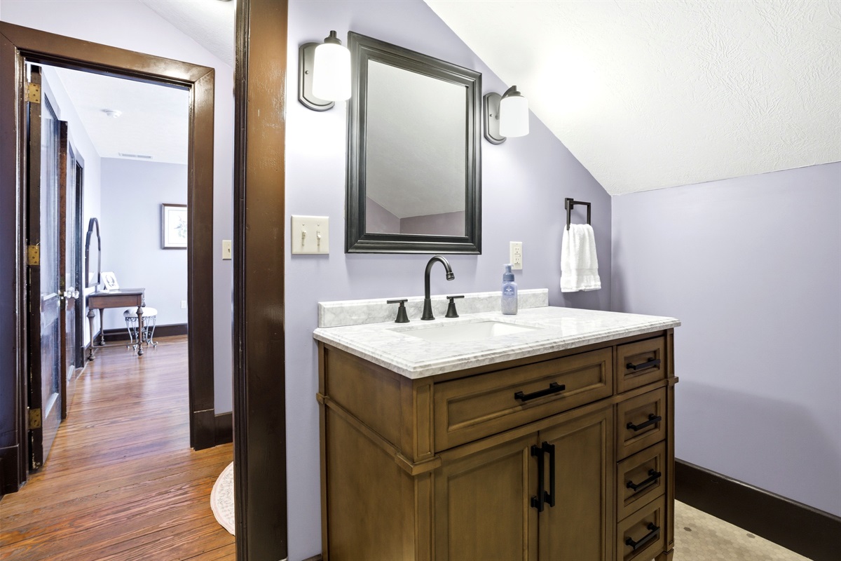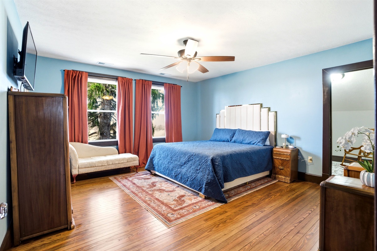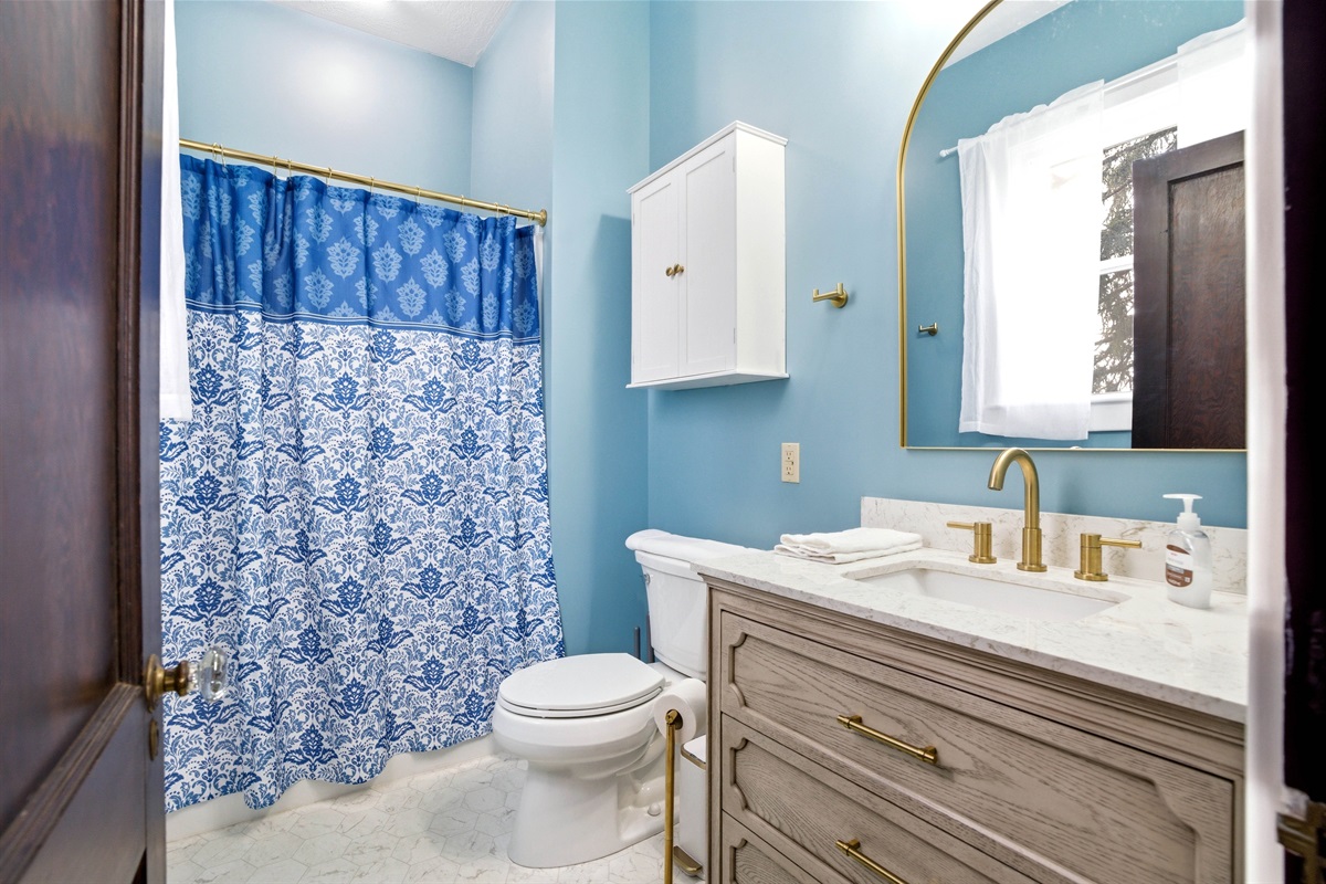 Inside, the home blends historic charm with all the modern conveniences guests expect, including comfortable sleeping spaces, climate control, Wi-Fi, a fully equipped kitchen, and a tankless water heater for endless hot showers. You get the feel of a quiet country home without sacrificing comfort.