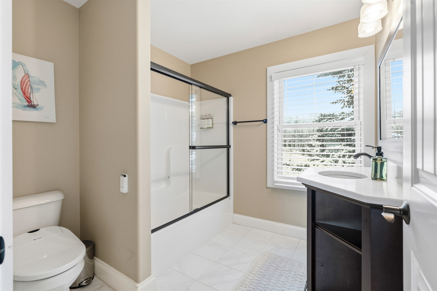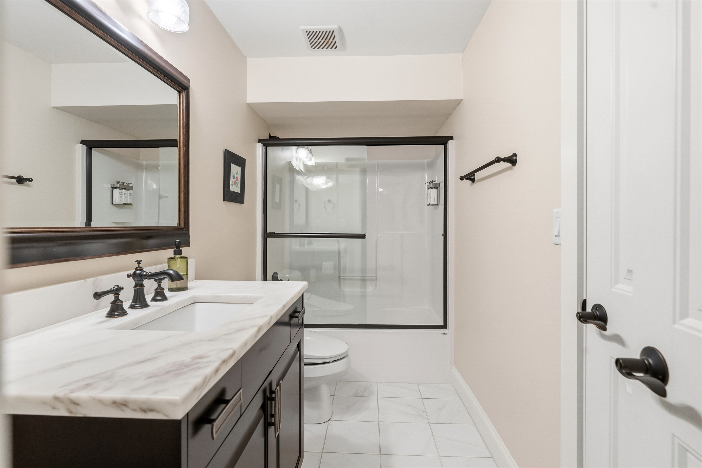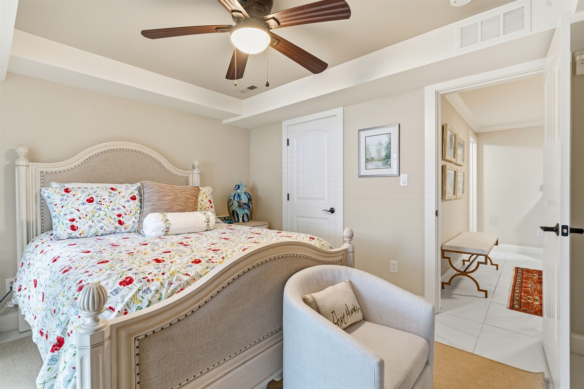 Lower-Level Bedroom: Queen bed with en suite full bathroom