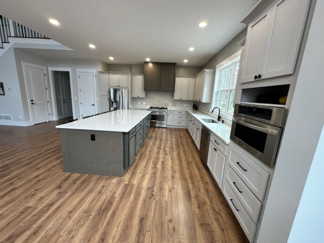 Enjoy a massive covered front porch. Sidewalk/landscaping to be installed soon, pending weather cooperation.