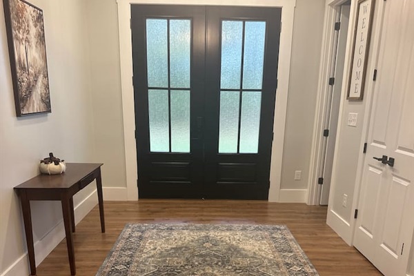 Welcome! Our large double front doors open toward the grand staircase and open living room/kitchen area, with the library/music room on the right when you enter.